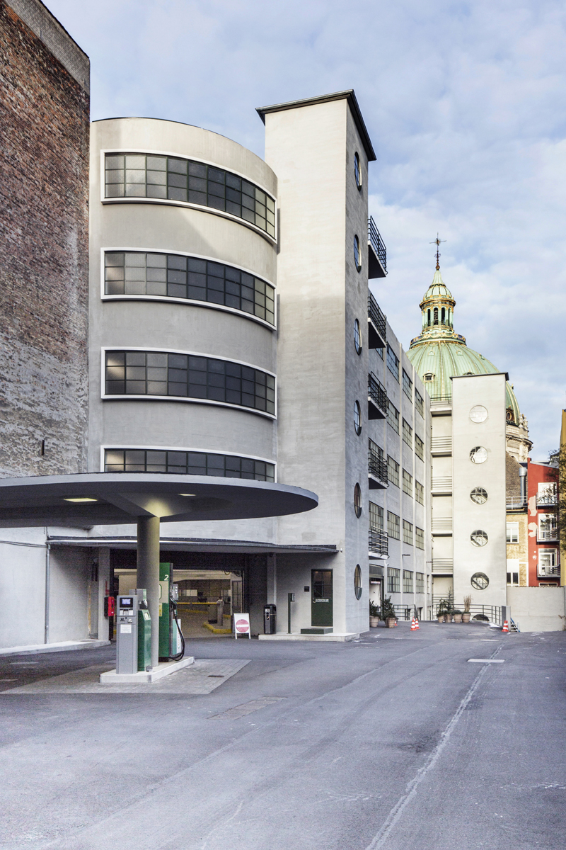 Palægaragerne i Dronningens Tværgade i København er Danmarks første parkeringshus. Det funktionalistiske anlæg blev opført i 1932 med periodens moderne, amerikanske principper som forbillede. Vi har rådgivet i alle faser og gennemført en omfattende restaurering og genopretning af anlægget, der blev udført, mens parkeringshuset var i drift.